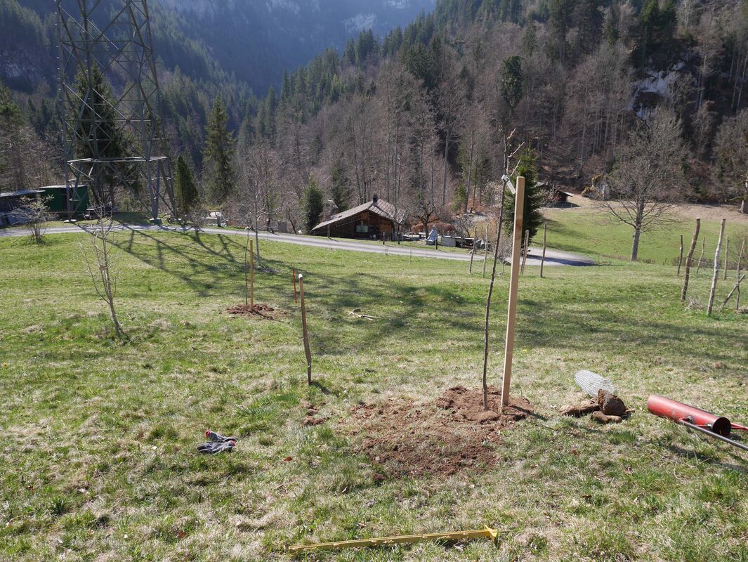 Hochstamm-Obstbäume sind wertvolle Elemente in der Kulturlandschaft, um auf der Schweibenalp oberhalb von Brienz in 1100 m über Meer die Vielfalt von Insekten- und Vogelarten zu fördern. In der alpinen Permakultur wurden im vergangenen Jahrzehnt bereits zahlreiche Obstbäume in eher vereinzelten Teilbeständen gepflanzt. Diese bereits vorhandenen Bäume durch weitere Neupflanzungen mit-einander zu vernetzen, ist das von uns unterstütze Projekt. Es sollen wenigstens 20 Obstbaum-Hochstämme neu gepflanzt werden, so dass die Lücken zwischen den bereits existierenden Beständen überbrückt werden und so ein ökologisch wertvolles, engmaschiges Obstbaum-Netzwerk entsteht.